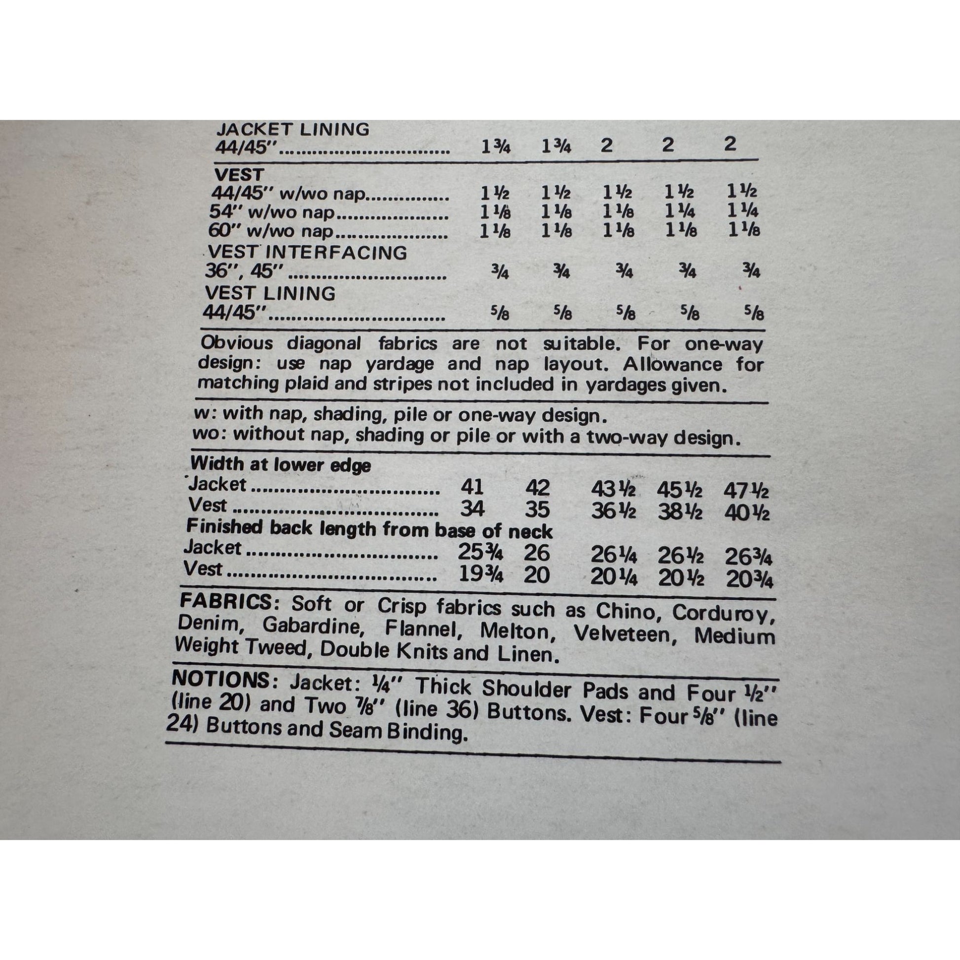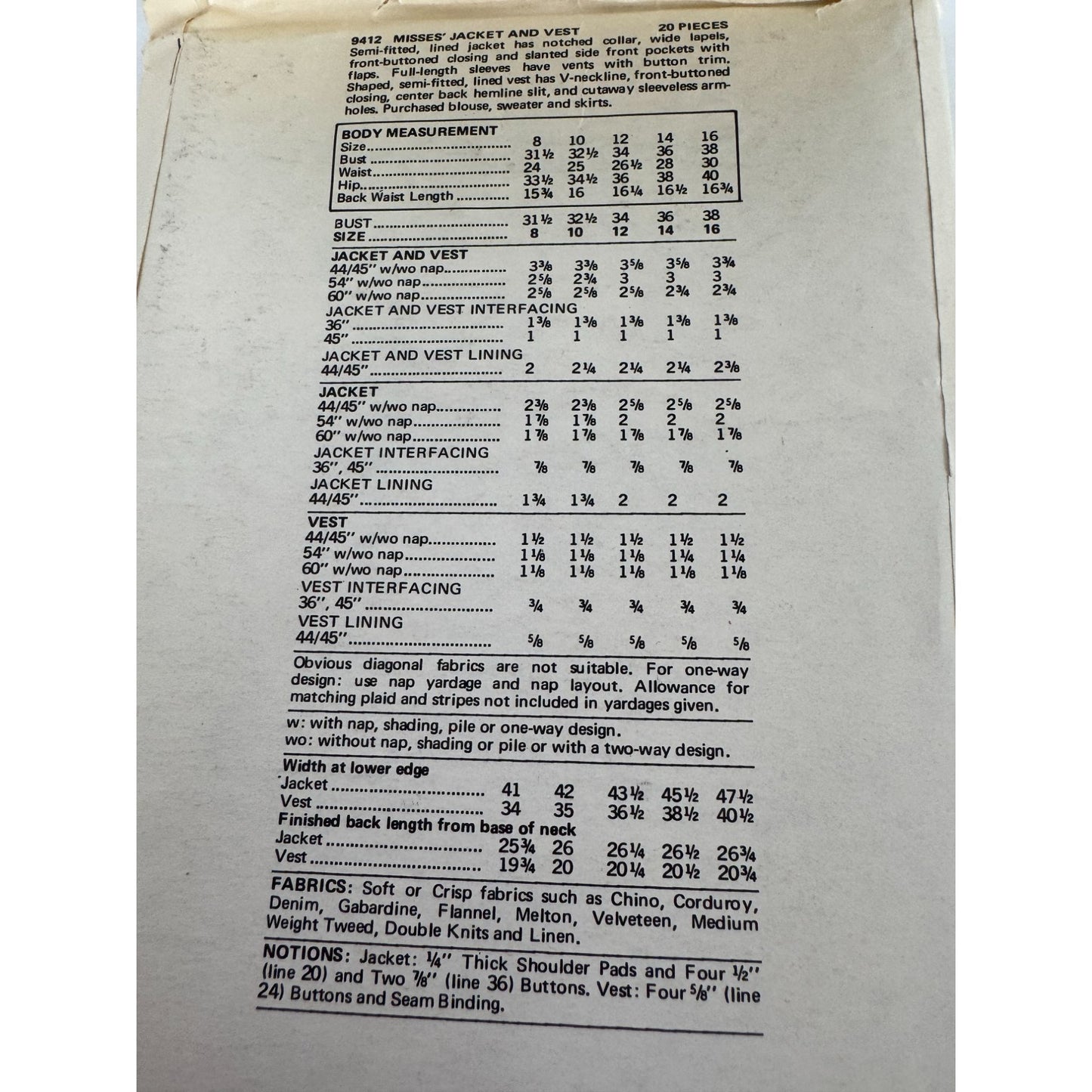 Vogue Sewing Pattern 9412: Misses Jacket and Vest
