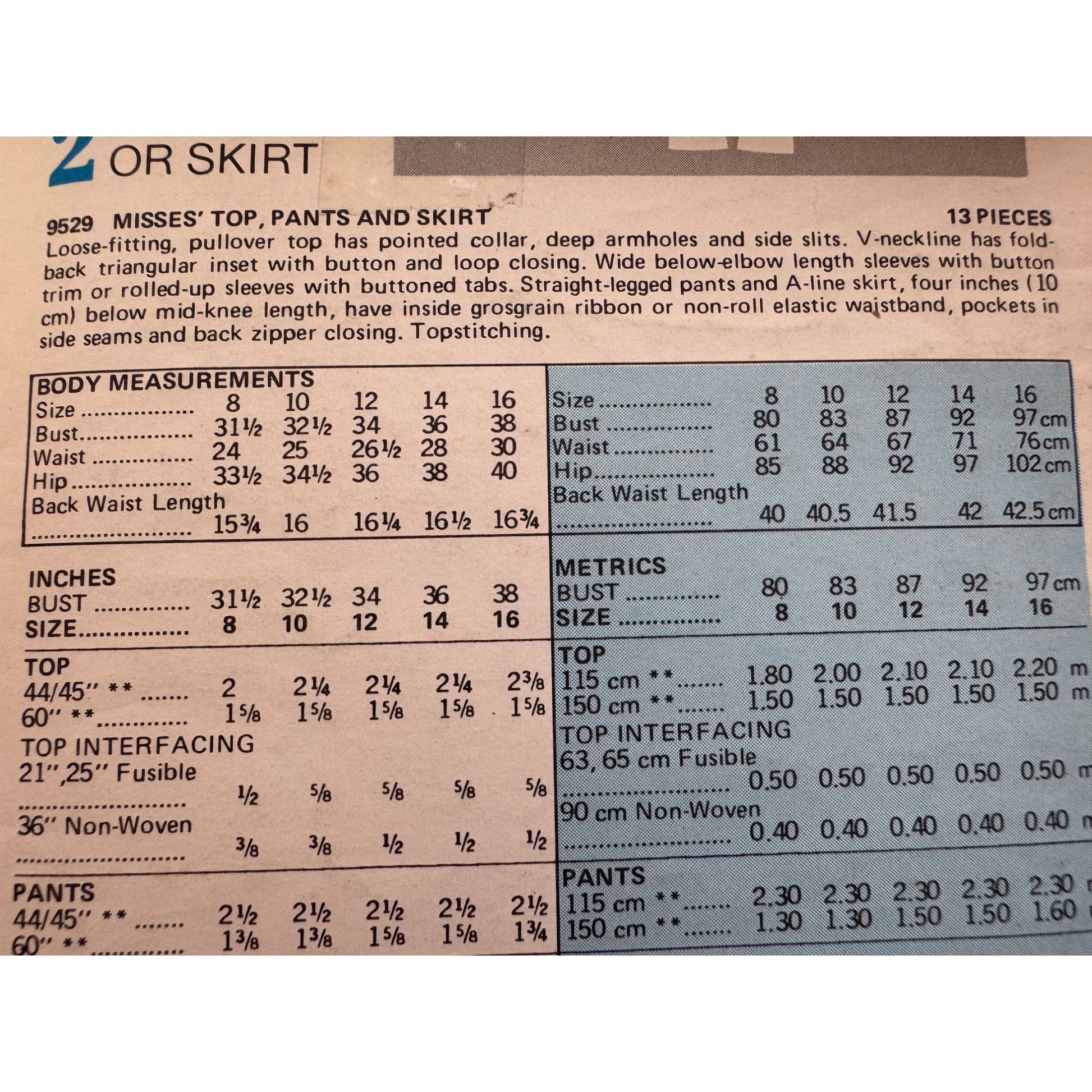 Vogue Sewing Pattern 9529: Misses' Top, Pants, and Skirt