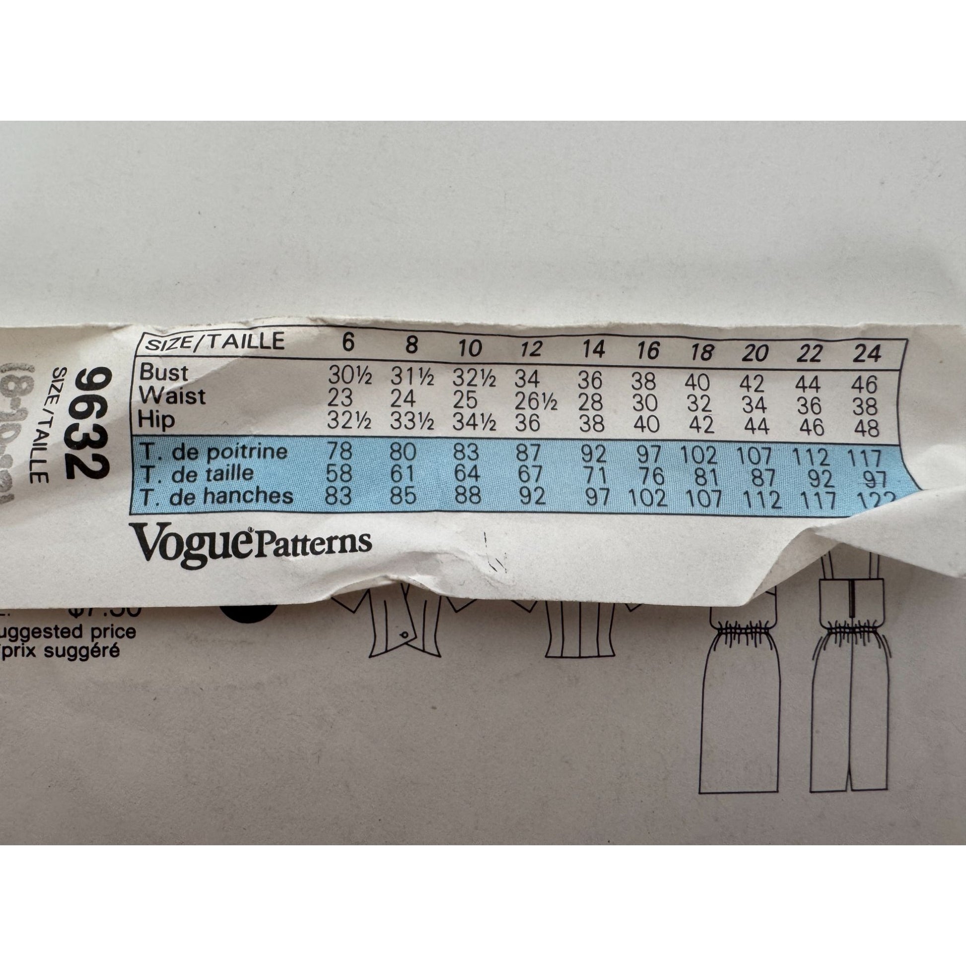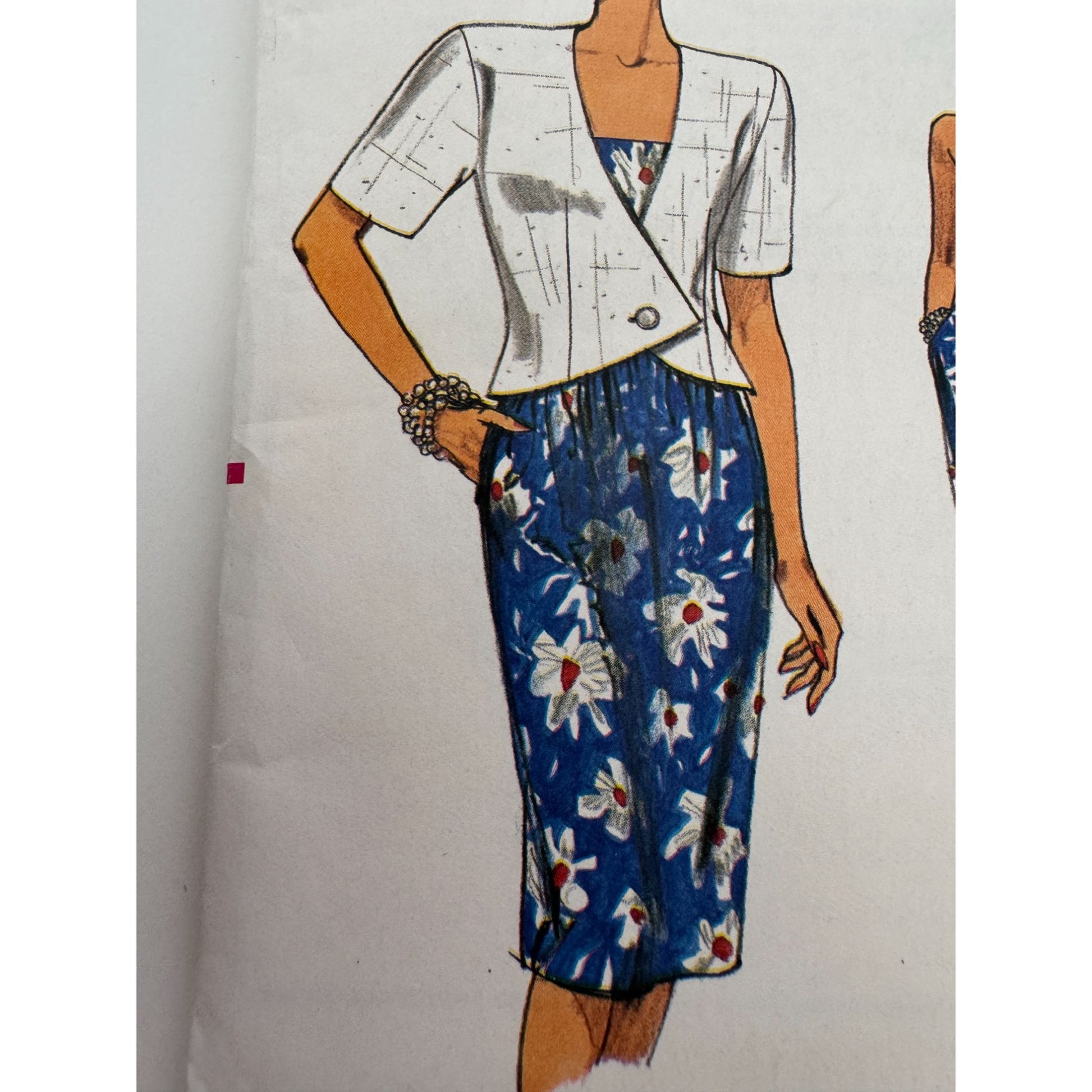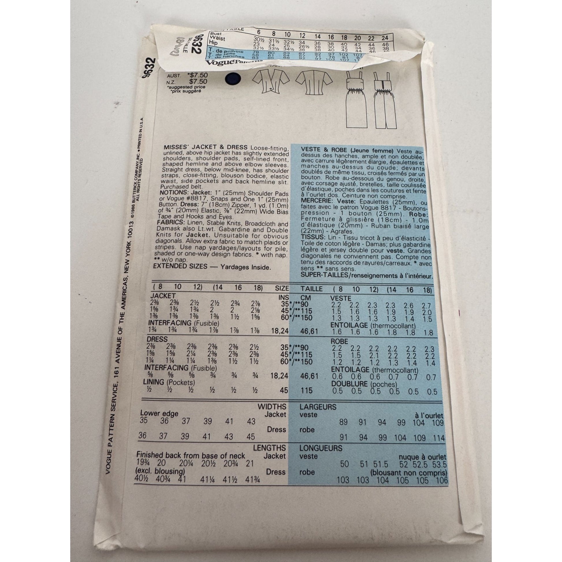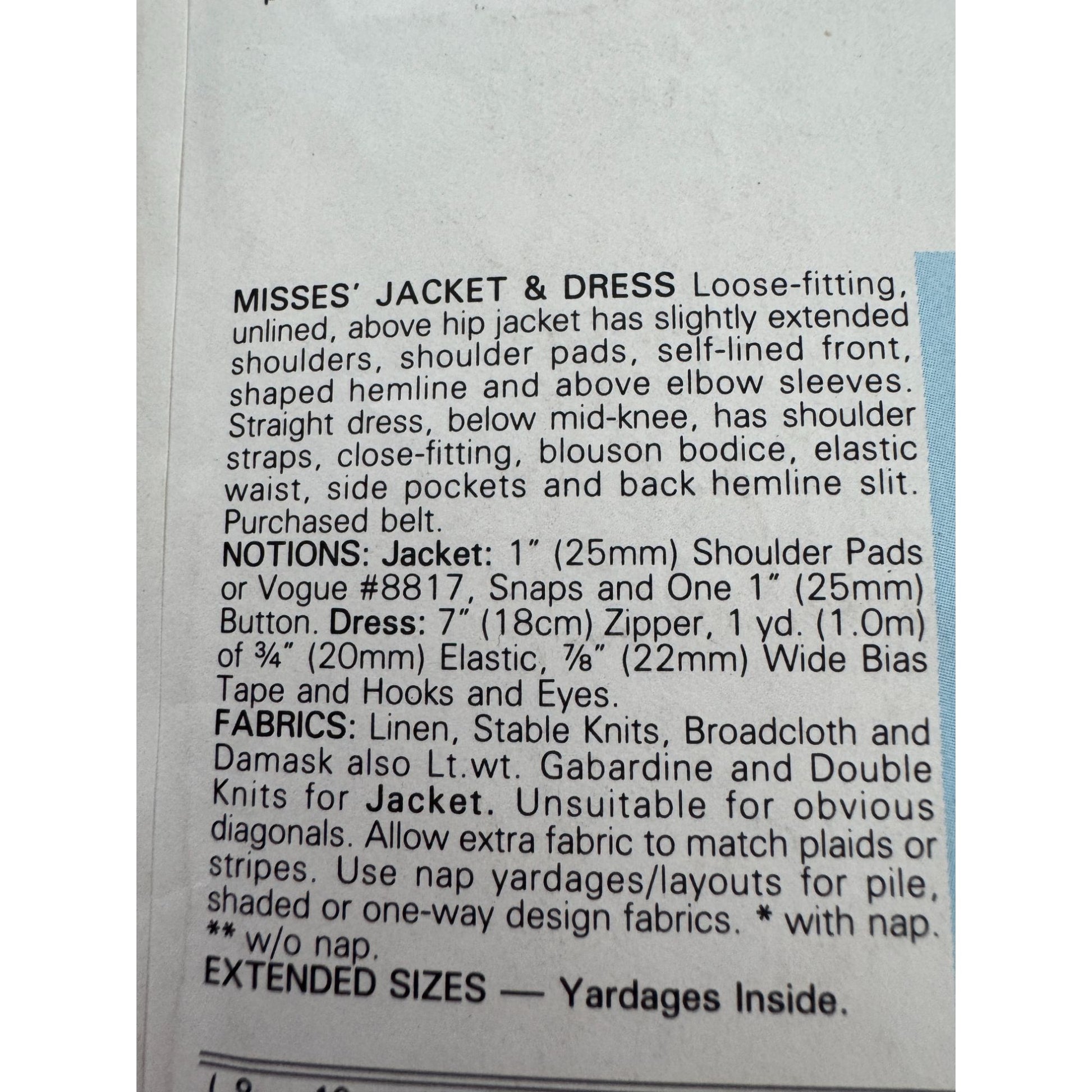 Vogue Sewing Pattern 9632 Misses Jacket Straight Dress 1980s Vintage 8 10 12 UC