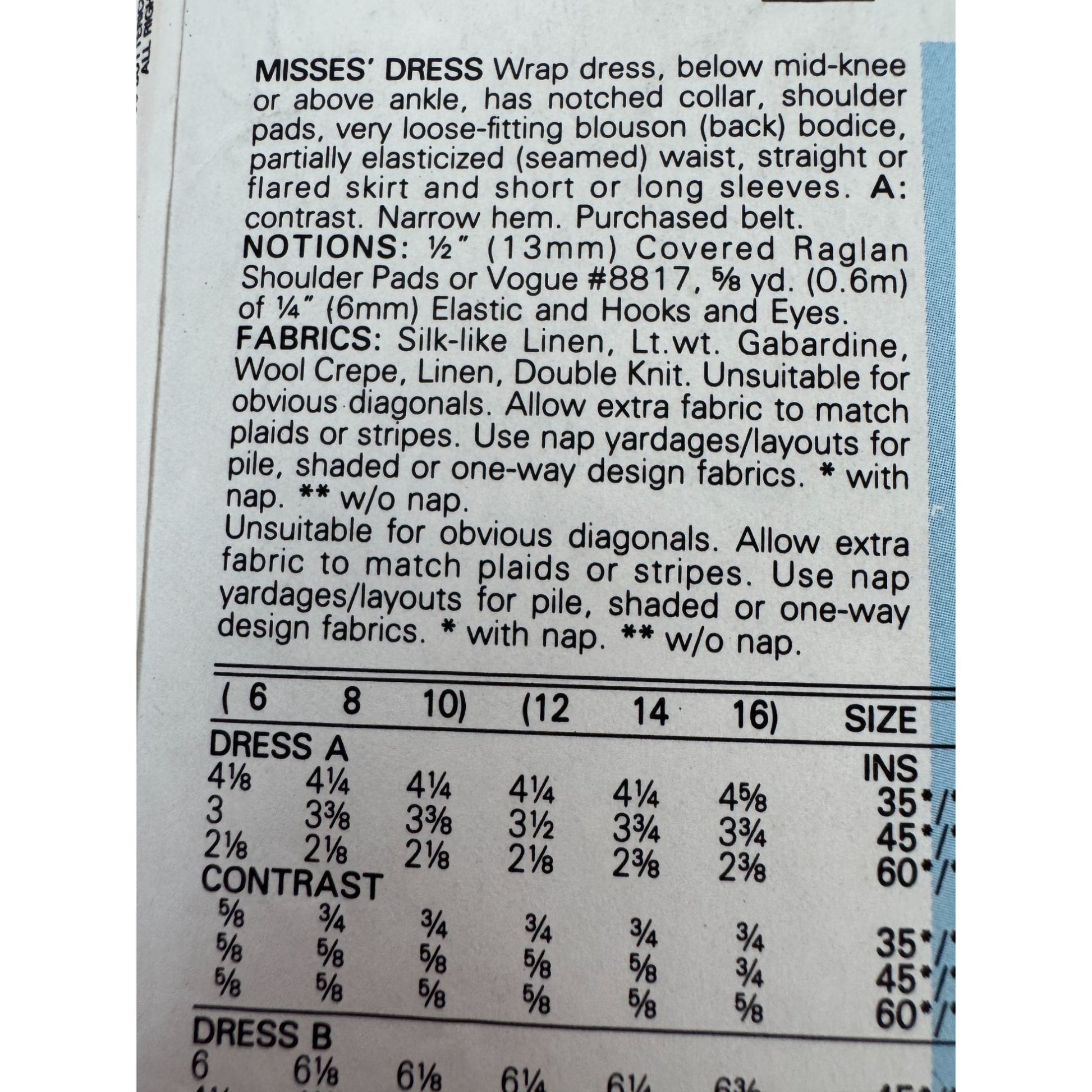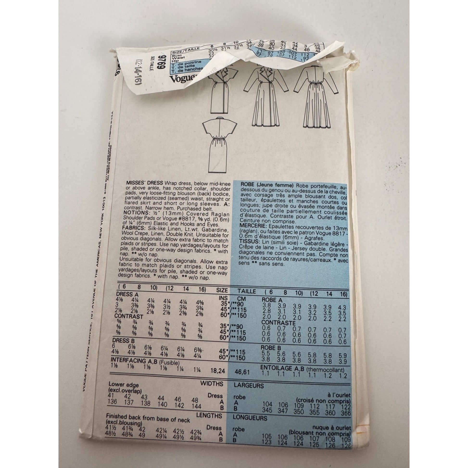 Vogue Sewing Pattern 9769 Wrap Dress 1980s Fashion Vintage Uncut 12 14 16