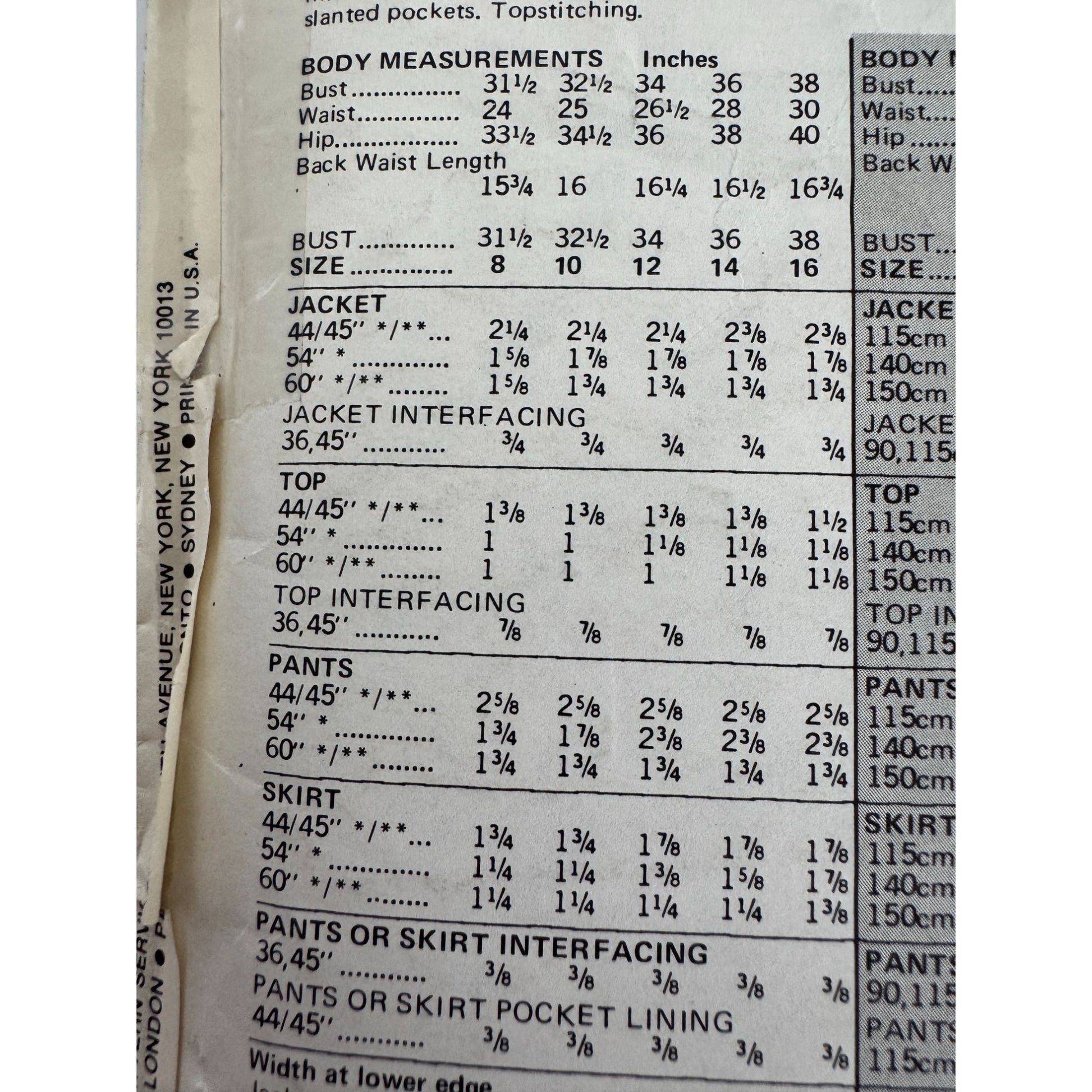 Vogue Sewing Pattern 9784 Misses Jacket Top Pants Skirt Casual Outfit Size 10 UC