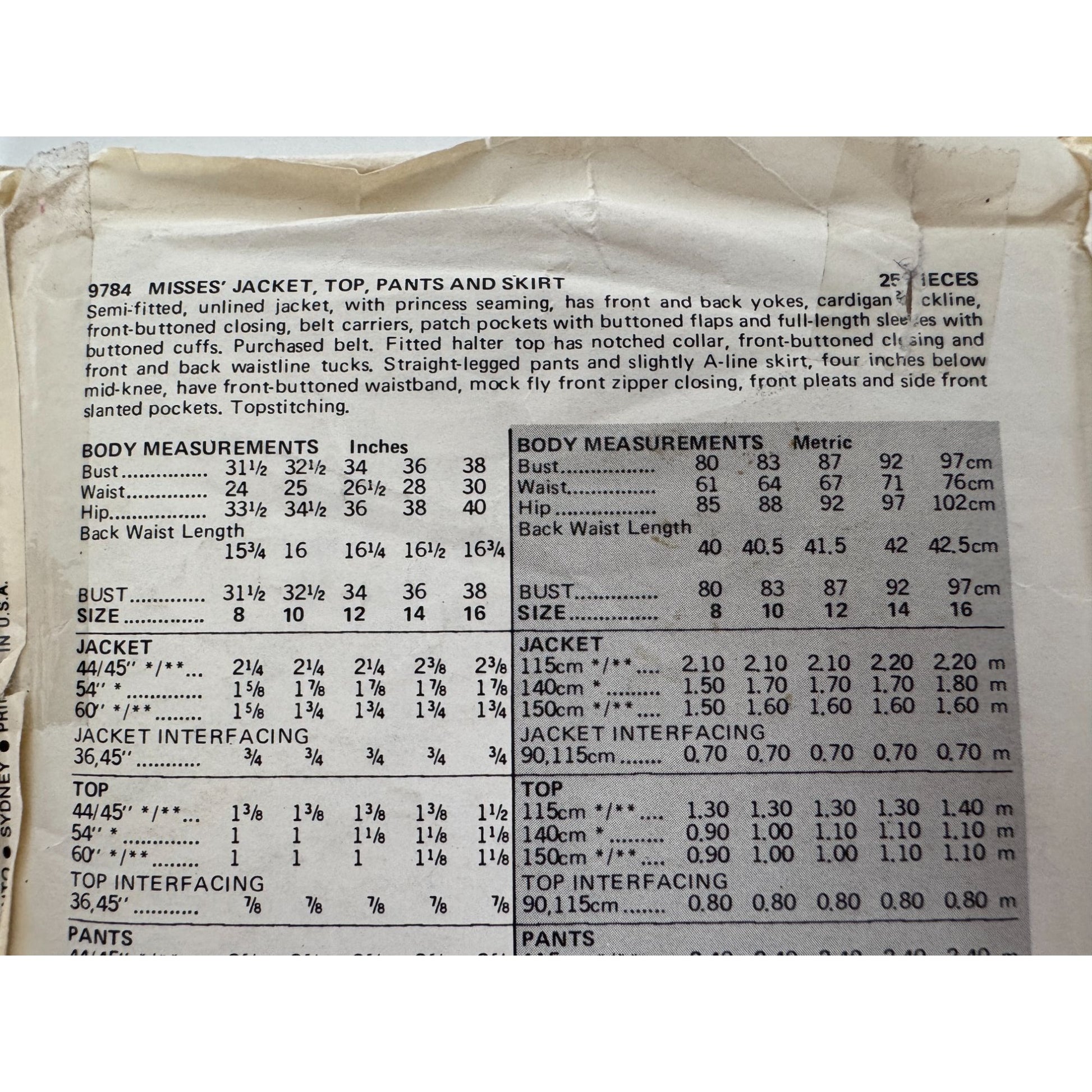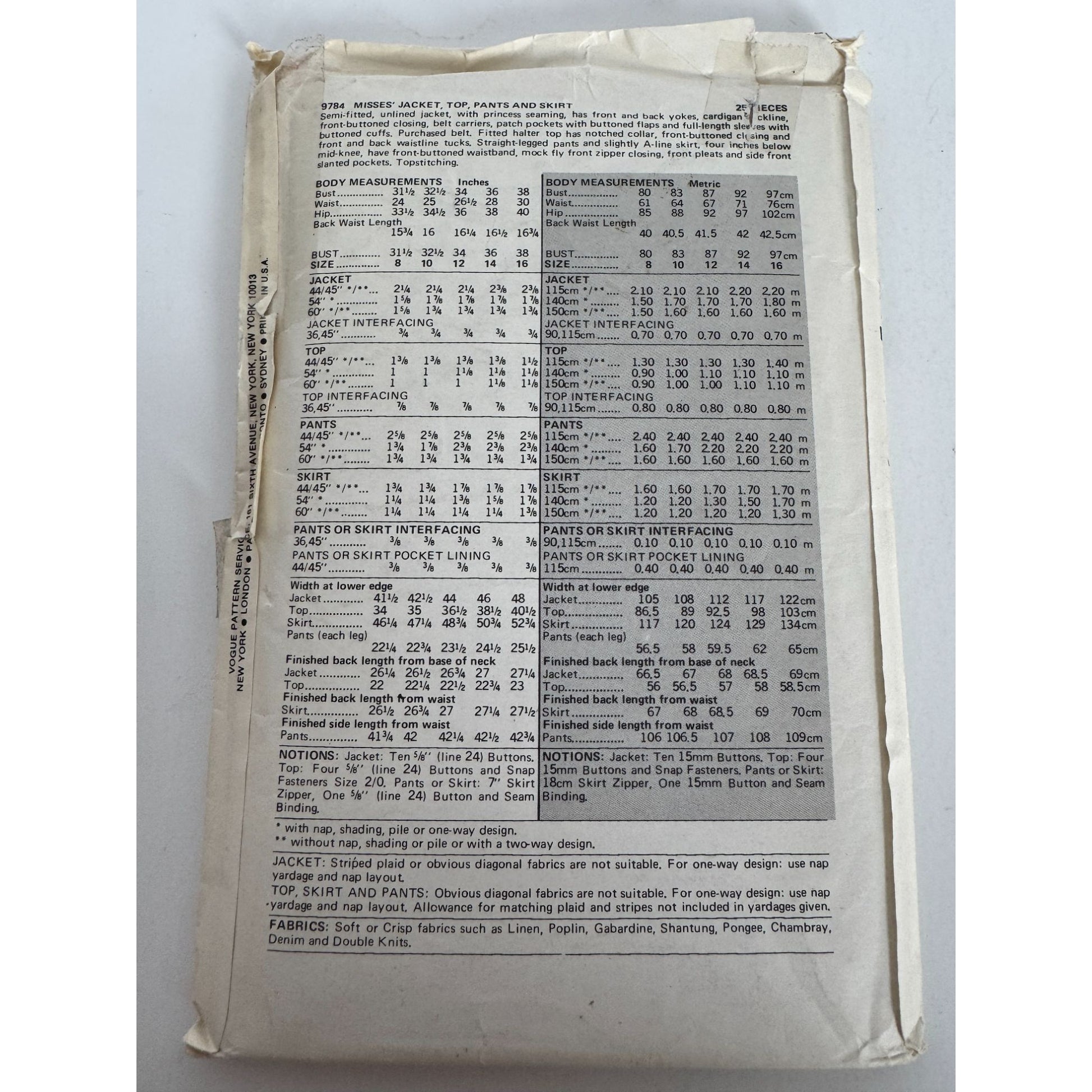 Vogue Sewing Pattern 9784: Misses' Jacket, Top, Pants and Skirt