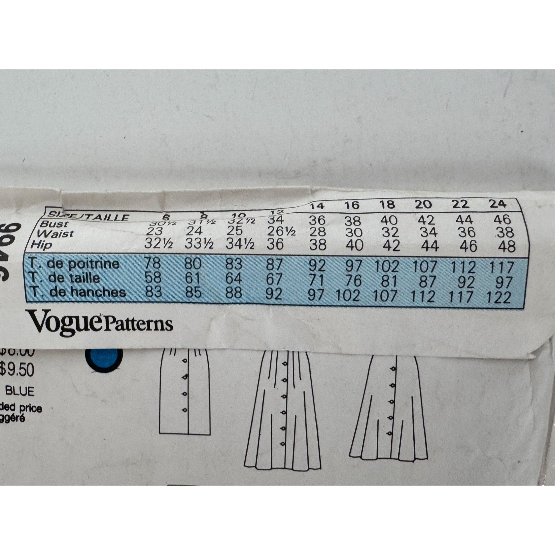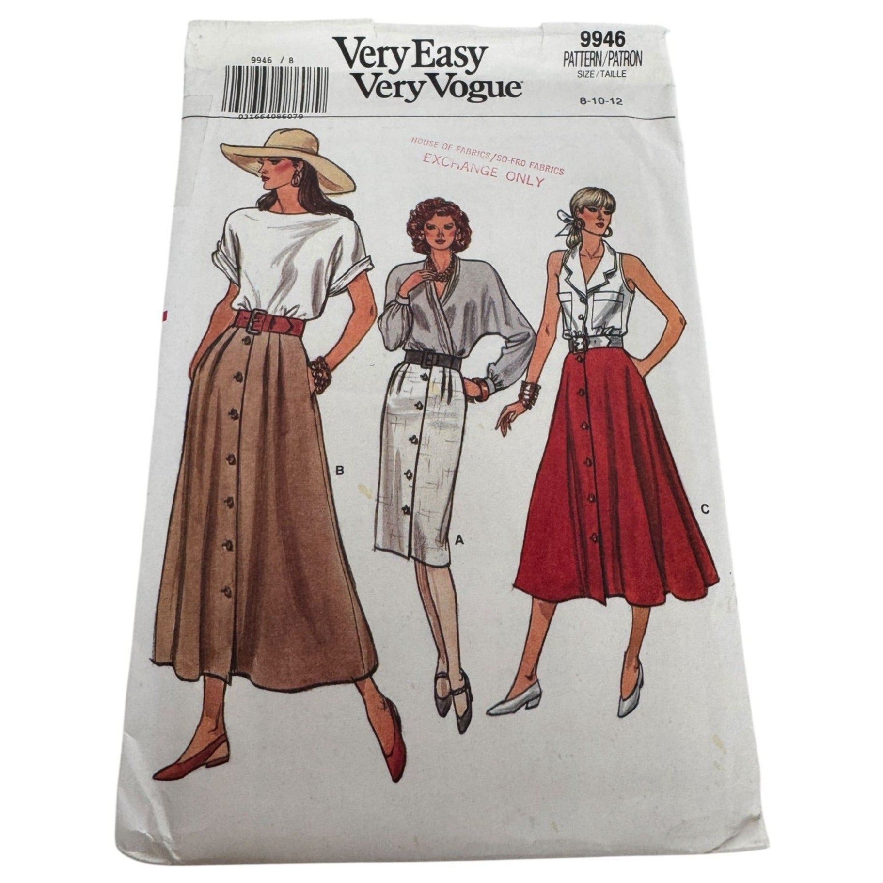 Vogue Sewing Pattern 9946 Straight or Slightly Flared Skirt Modest Long 8 10 12