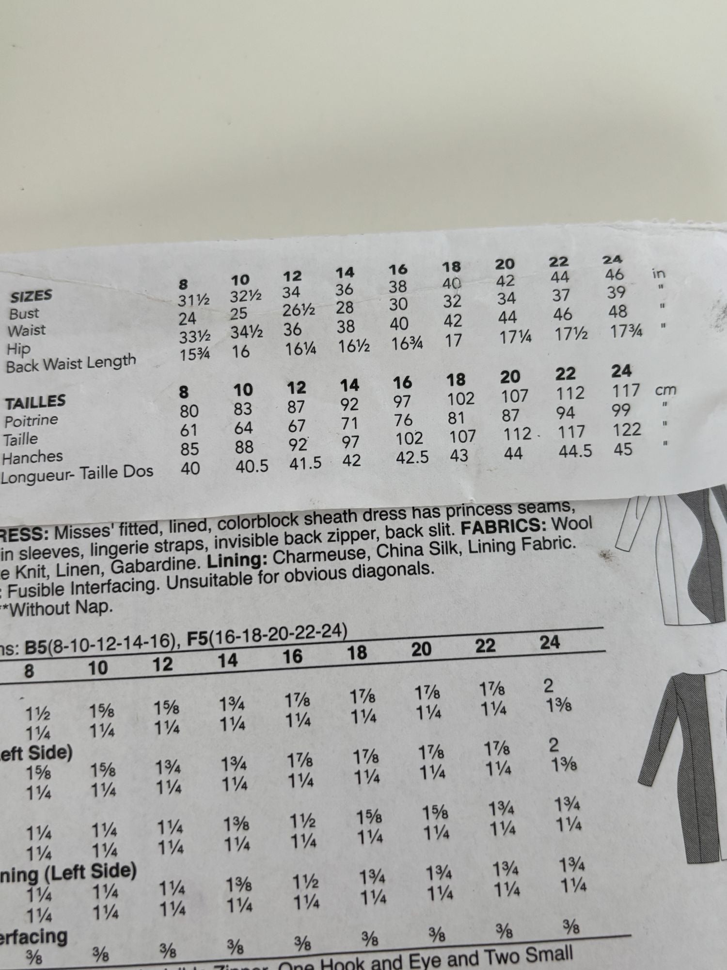 This sewing pattern features a stylish colorblock sheath dress with a unique wavy front design. The pattern provides detailed instructions for creating a sophisticated dress suitable for various occasions.