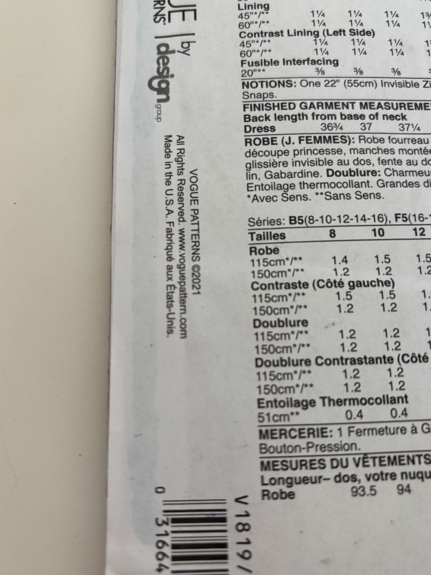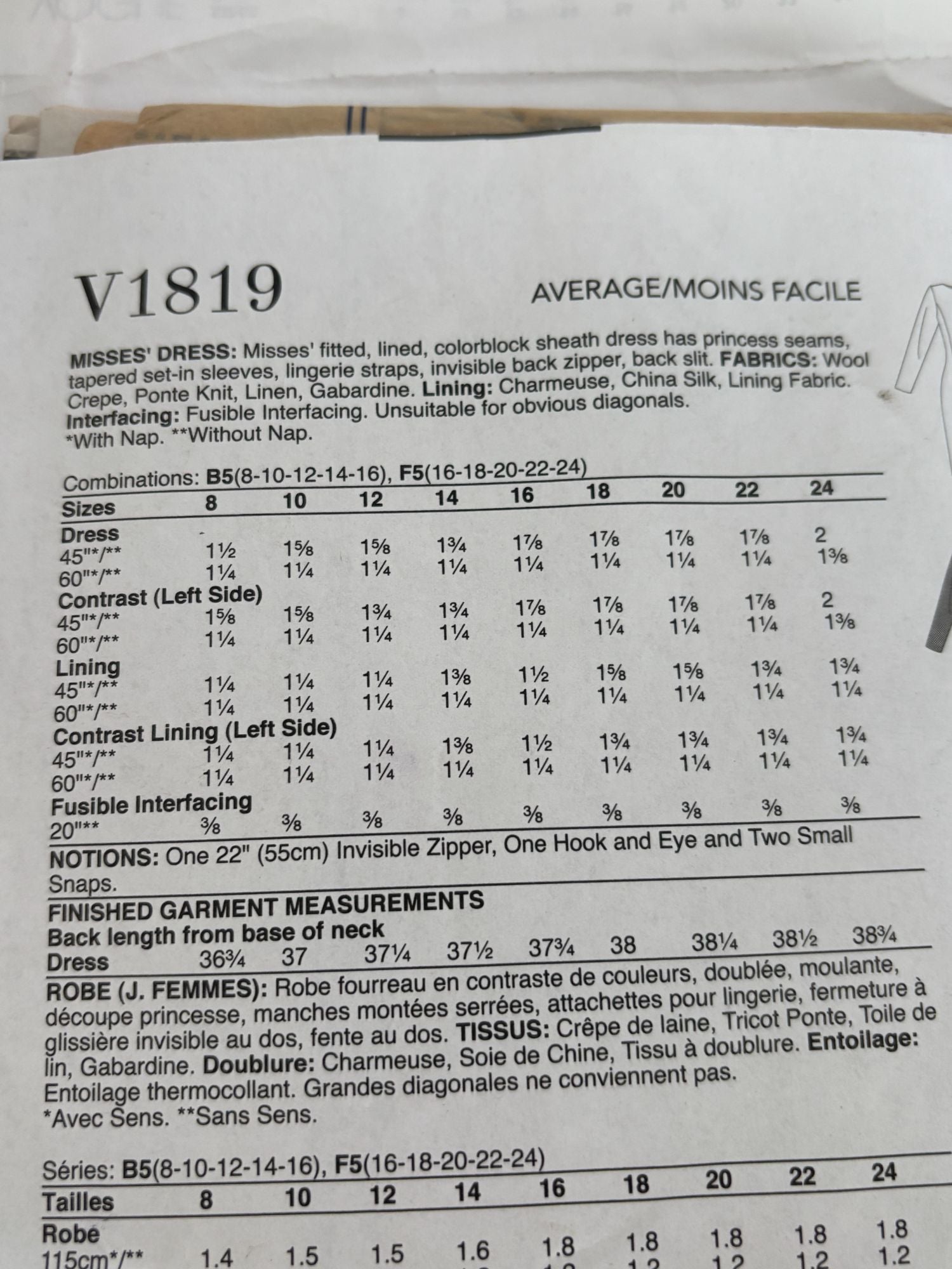Vogue Sewing Pattern V1819: Misses' Dress