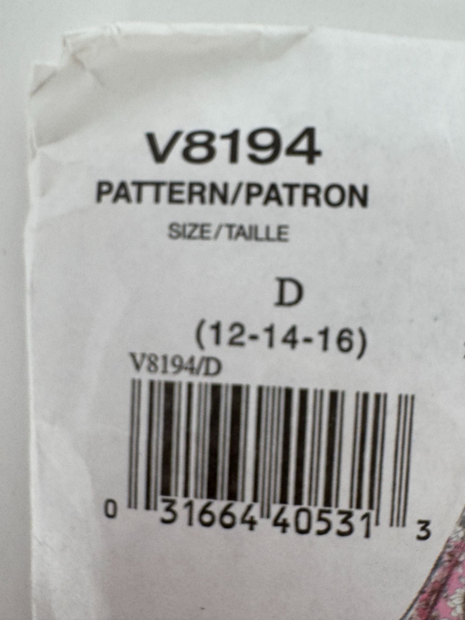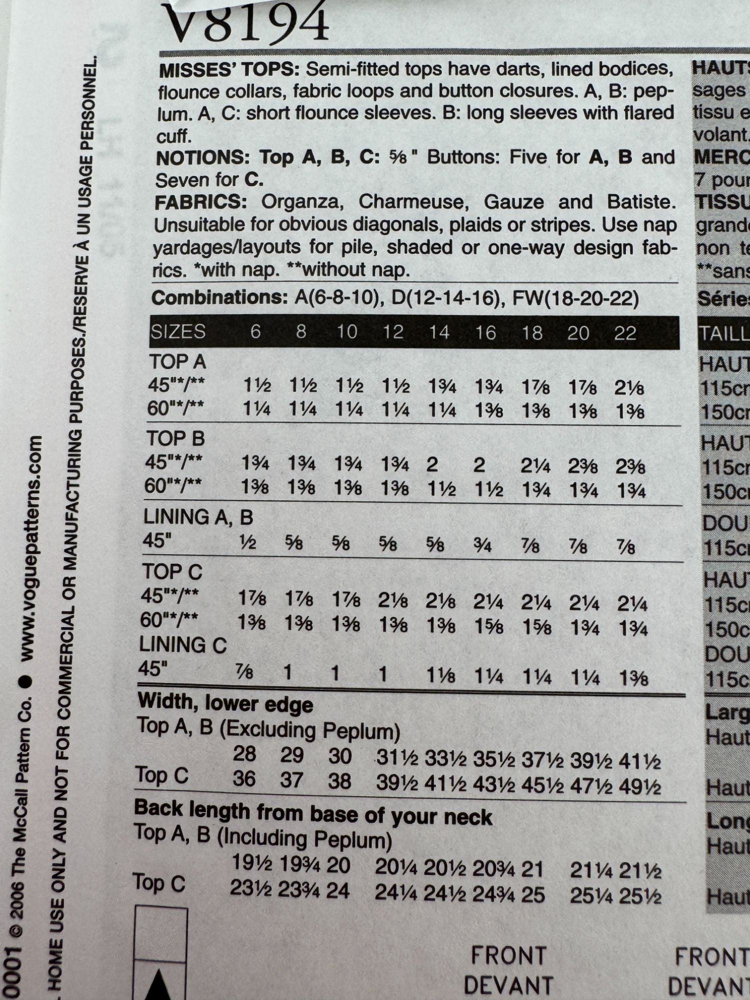 Vogue Sewing Pattern V8194 Misses Top Shirt Flounce Collars Peplum 12-16 Easy UC