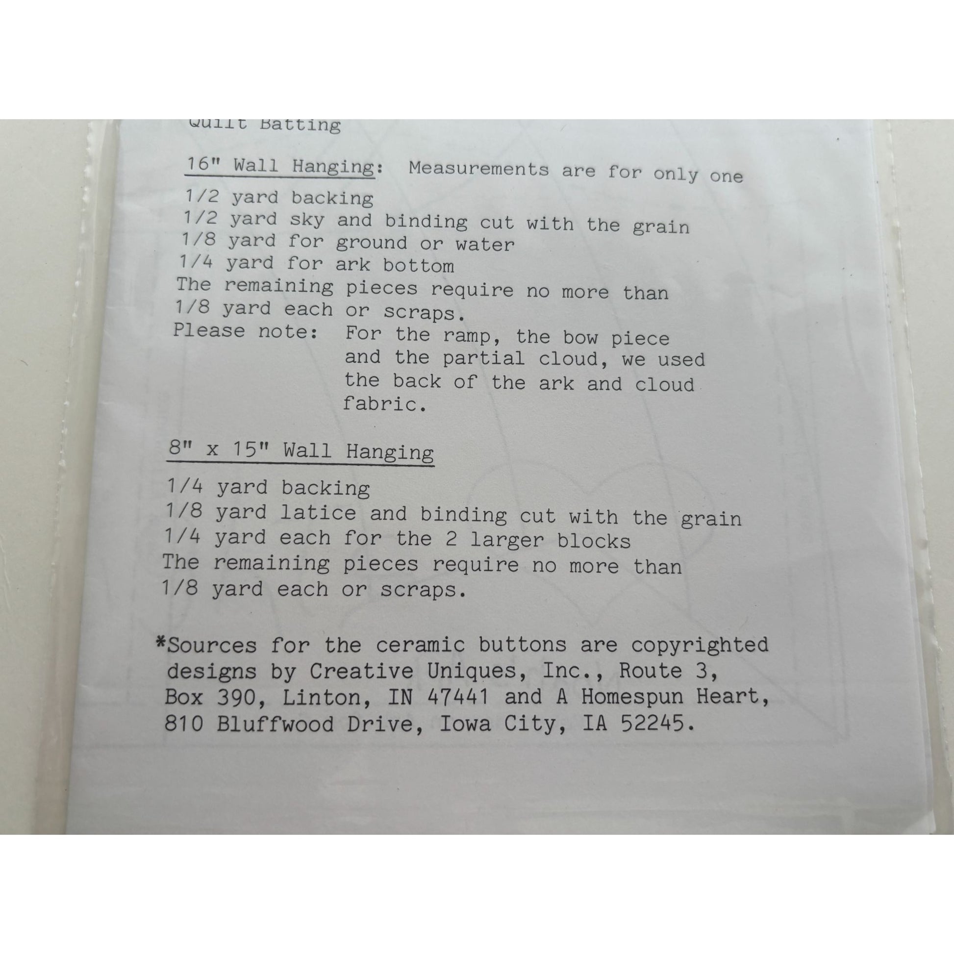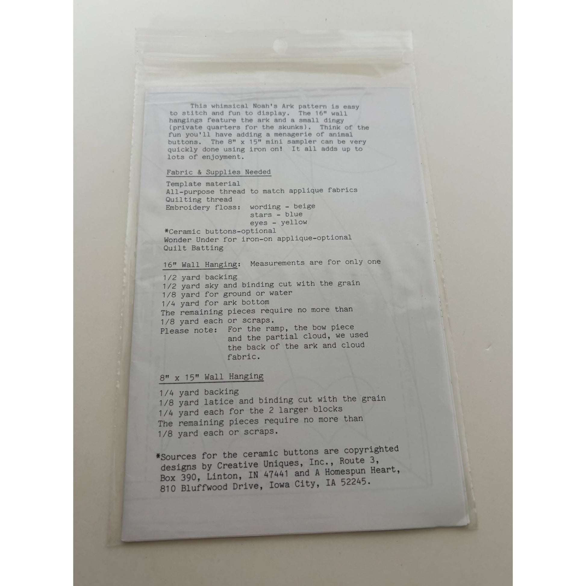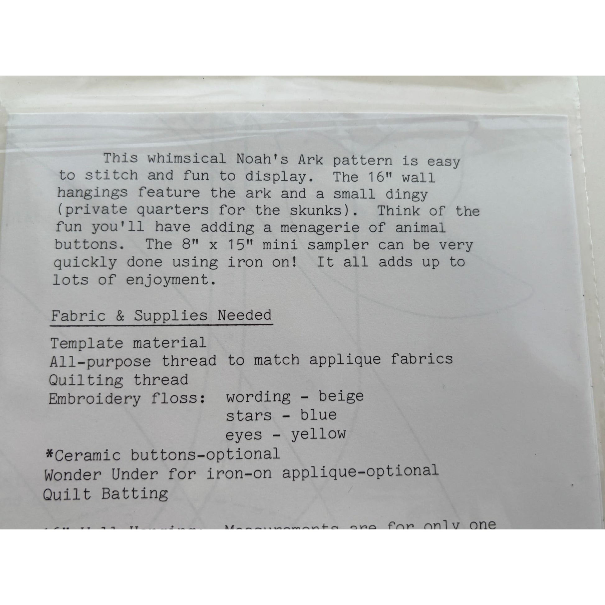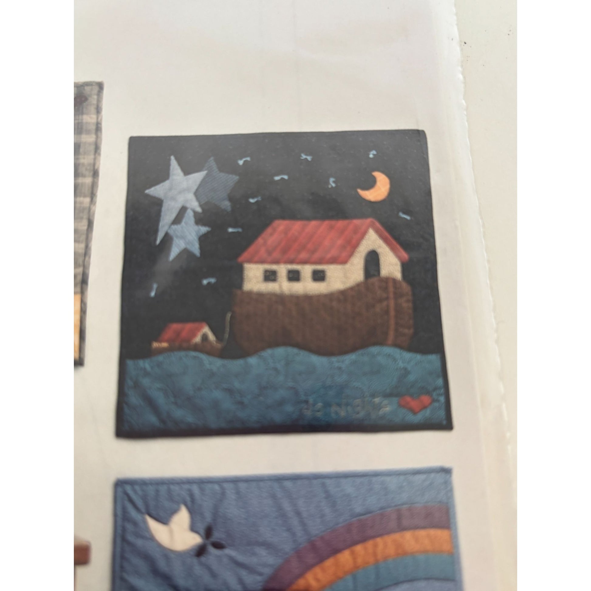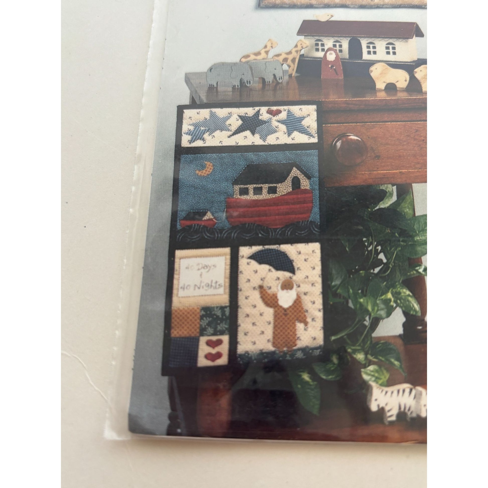 This pattern offers a delightful depiction of the Noah's Ark story. This pattern presents various creative scenes featuring the ark, animals, and weather elements, encapsulated in a charming quilt display. Ideal for those passionate about quilting and biblical themes.